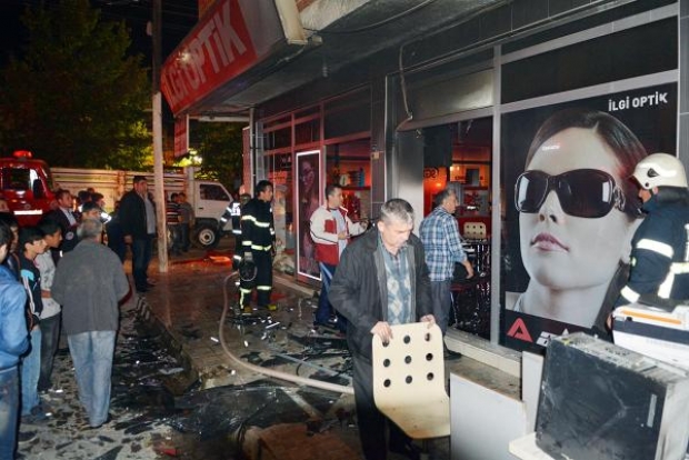 MHP İlçe Başkanının işyerinde yangın3 ayrı noktada ciddi anlamda büyük hasarın olduğu belirtilen işyerindeki yangını gören MHP Turgutlu İlçe Başkanı Sedat Kutlu gözyaşlarını tutamadı. MANİSA’nın Turgutlu İlçesi’nde, MHP Turgutlu İlçe Başkanı Sedat Kutlu’ya ait gözlük satılan işyeri çıkan yangında kullanılamaz hale gelirken, işyerinde oldukça büyük maddi hasar meydana geldi. Yedieylül Mahallesi Arabacılar Sokak’ta, Öğretmenevi arkasında bulunan, MHP Turgutlu İlçe Başkanı Sedat Kutlu’nun sahibi olduğu işyerinde dün gece 20.30 srıalarında henüz bilinmeyen bir nedenle yangın çıktı. İşyerinin yandığını görenlerin haber vermesi üzerine 110 İtfaiye ekipleri olay yerine sevk edildi. Olay yerinde geniş önlem alan polis ekipleri Arabacılar Sokak’ı trafiğe kapattı. İşyerinin tamamen yandığı yangını itfaiye ekipleri yangını yaptığı çalışma sonucu kısa sürede söndürdü. İşyerinin yandığını gören Sedat Kutlu gözyaşlarını tutamadı. Yangını duyan MHP’li Turgutlu Belediye Başkanı Turgay Şirin ve çok sayıda partili olay yerine geldi. Yangın hakkında itfaiye ve polis ekiplerinden bilgi alan Belediye Başkanı Turgay Şirin yaptığı açıklamada: “3 ayrı noktada ciddi anlamda büyük hasar var. İtfaiye ve emniyet ekipleri içerde, incelemelerini tamamlayacaklar. Yangının çıkış sebebi konusunda ulaştıkları neticeyi paylaşacaklar. İçerde her şey kullanılmaz halde. Bunun dışında söylenebilecek çok fazla birşey yok.” dedi. Polis ve itfaiye ekipleri Sedat Kutlu’ya ait işyerindeki yangının çıkış nedenini araştırıyor.HABER MERKEZİ