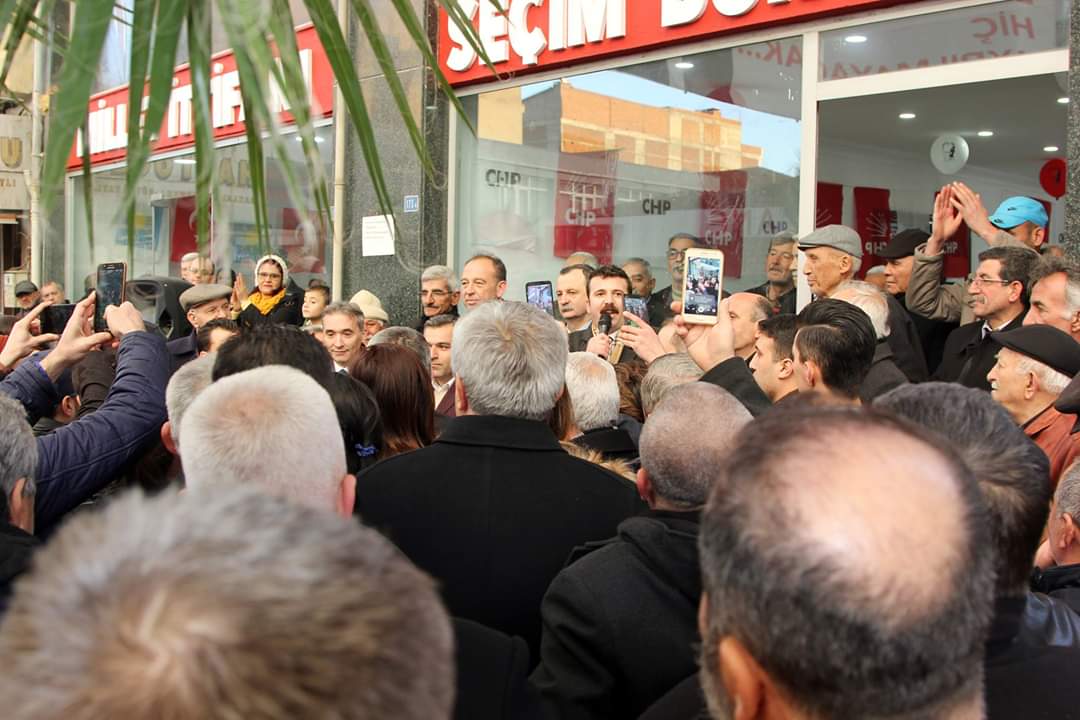 CHP'li Manisa Milletvekilleri Bekir Başevirgen ve Ahmet Vehbi Bakırlıoğlu'nun da bulunduğu karşılamanın ardından bir konuşma yapan Millet İttifakı Turgutlu Belediye Başkan Adayı Çetin Akın Suya %40 indirim yapacaklarının sözünü verdi.