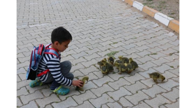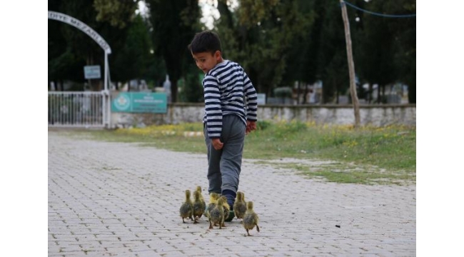 Minik Besim'in kaz yavrularıyla yürek ısıtan dostluğu