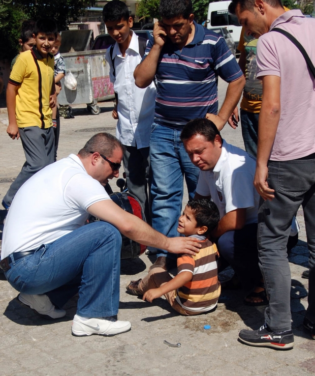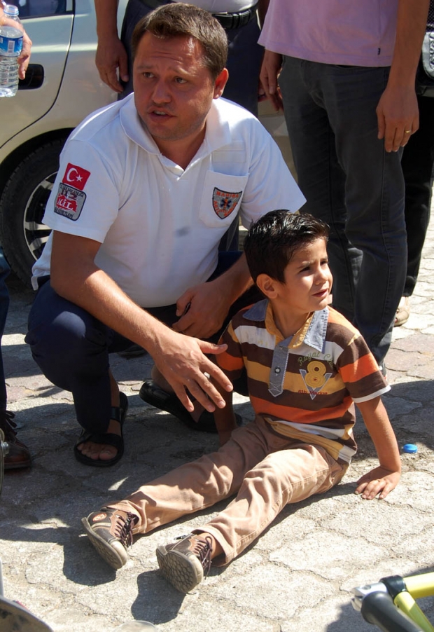 Sağlık ekiplerinin ilk müdahalesini yaptığı minik Kerem sağlık ekiplerine “ne olur bana iğne vurmayın” diye seslendi. Vatandaşların yardımıyla ekiplerce ambulansla hastaneye kaldırılan 4 yaşındaki Kerem’in sağ ayağında kırık olduğu öğrenildi. Olayla ilgili soruşturma sürüyor. Doğan ÇİZMECİ - Nurullah ÇANKAYA