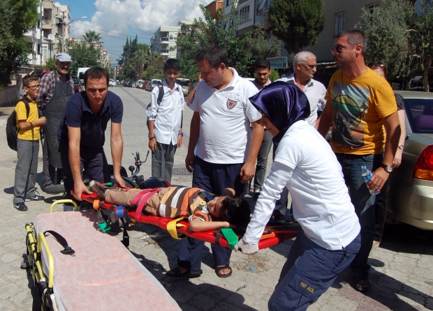 Kaza saat 12.15 sıralarında Cumhuriyet Mahallesi Demirel Sokak üzerinde meydana geldi. Selma B. (55) yönetimindeki 45 TS xxx plakalı otomobil ile Ferhat G. (33) yönetimindeki elektrikli bisiklet çarpıştı.