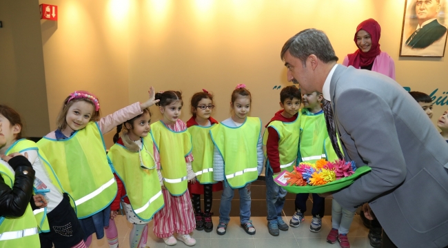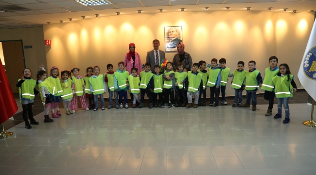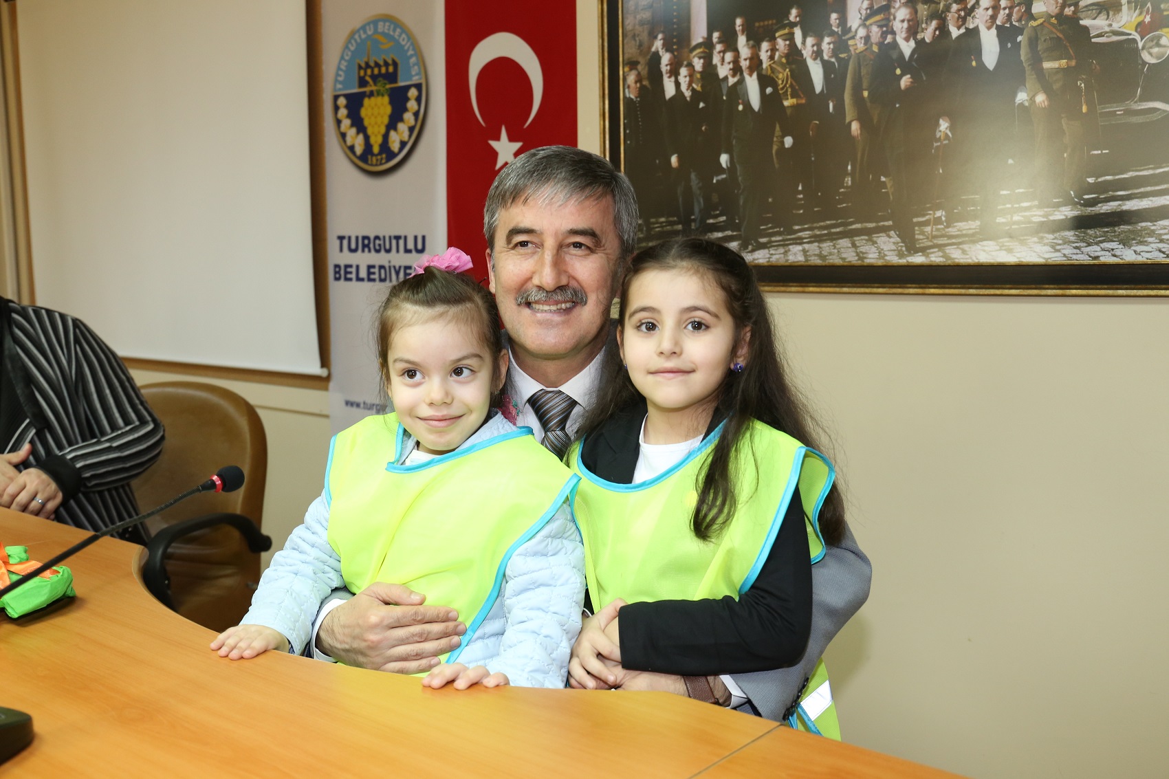 Turgutlu’da okul öncesi eğitimi veren kurumlardan olan Özel Sevgi Pınarım Anokulu’nun öğrencileri, Turgutlu Belediye Başkanı Turgay Şirin’i ziyaret etti. Minik öğrenciler kendi elleriyle yaptığı çiçeği Başkan Şirin’e takdim ederken, Başkan Şirin de sürpriz ziyaretlerinden dolayı tüm çocuklara teşekkür ederek, “Bugünün küçükleri, yarının büyükleri geleceğimiz olan çocuklarımız bizim her şeyimiz. Allah onlara sağlıklı uzun yıllar nasip etsin” dedi. Turgutlu Özel Sevgi Pınarım Anaokulu’nun Sevimli Dahiler sınıfı öğrencileri, Keşifteyiz eğitim programı kapsamında okul öğretmenleri Pakize Turgut, Mine Çelik ve Sevim Demir ile birlikte Turgutlu Belediye Başkanı Turgay Şirin’i ziyaret ederek, Belediyeyi gezme imkanı buldular. Öğrenciler kendi el yapımı olan çiçeği Başkan Şirin’e takdim ederken, Başkan amcalarından yaz ayında bir mangal partisi düzenlemesini istediler. Başkan Şirin, belediye meclis salonunda ağırladığı öğrenciler ile tek tek yakından ilgilenirken, kendisine ziyaret eden öğrencilerin arasında kendi kızı da bulunan Fen İşleri Müdürü Yasemin Özay Sungur eşlik etti. Başkan Şirin, “Bu sürpriz ziyaretlerinden dolayı çocuklarımıza teşekkür ediyorum. Bugünün küçükleri, yarının büyükleri geleceğimiz olan çocuklarımız bizlerin baş tacıdır. Başkan amcaları olarak havaların ısınmasıyla birlikte istedikleri mangal partisini yapma sözü veriyorum. Ayrıca el yapımı olan ve emek sarf edilen çiçek için de ayrıca teşekkür ediyorum. Bu anlamlı hediyeyi saklayacağım” şeklinde konuştu. Sevimli Dahiler sınıfının öğrencileri Başkan amcalarına şarkı söyleyerek sevgi gösterilerinde bulunurken, okul öğretmenleri Pakize Turgut, Mine Çelik ve Sevim Demir de Belediye Başkanı Turgay Şirin’e teşekkür ederek, ilgi ve desteklerinden dolayı memnuniyetini dile getirdiler.