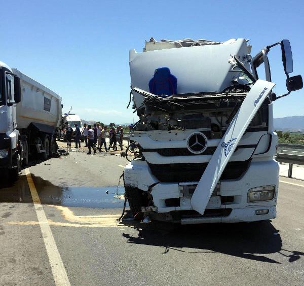 Mola için durduğu yerde, kamyonun çarpması sonucu öldüMANİSA'nın Akhisar ilçesinde, mola için yol kenarında durup indiği kamyonuna, arkadan gelen başka kamyonun çarpmasıyla bariyer ile araç arasında sıkışıp, ağır yaralanan Murat Yavaş (38), kaldırıldığı hastanede yaşamını yitirdi.Kaza, bugün saat 12.00 sıralarında, Akhisar-Gölmarmara karayolunun 8'inci kilometresindeki Sarıçalı Mahallesi yakınlarında meydana geldi. Mola vermek için 45 RM ... plakalı kamyonunu yol kenarında durduran Murat Yavaş, aracından indi. Bu sırada arkadan gelen 45 RJ ... pakalı başka bir kamyon, Yavaş'ın kamyonuna arkadan hızla çarptı. Çarpmanın şiddetiyle Murat Yavaş, kendi kamyonuyla bariyerlerin arasına sıkıştı. Yoldan geçen diğer araç sürücülerinin durumu bildirmesi üzerine gelen 112 Acil Servis ekibi tarafından Akhisar Mustafa Kirazoğlu Devlet Hastanesi'ne kaldırılan Yavaş, doktorların müdahalesine rağmen yaşamını yitirdi. Murat Yavaş'ın cesedi, jandarmanın kaza yerindeki incelemelerinin ardından otopsi için İzmir Adil Tıp Kurumu'na gönderildi. Jandarma, kazayla ilgili soruşturma başlattı.dha