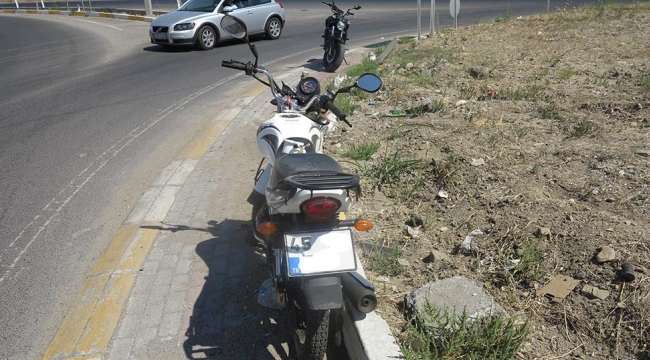 MANİSA'nın Turgutlu İlçesi'ndeki bir kavşakta yoldan çıkarak kenardaki toprak zemine devrilen motosikletteki iki kişi yaralandı.