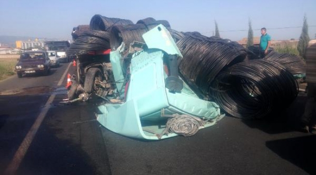 Mucize kurtuluş MANİSA'nın Salihli ilçesinde, oto çekiciye arkadan çarpan TIR'ın kasasından kayan tonlarca demir rulosu, şoför mahalini hurdaya çevirdi. TIR şoförü İsmail Öner (53), şans eseri yaralı olarak kurtulup, hastaneye kaldırıldı.Kaza, dün saat 14.30 sıralarında İzmir-Ankara karayolunun Durasıllı Mahallesi yakınlarında meydana geldi. İzmir'den yüklediği rulo demirleri Ankara'ya götürmek üzere yola çıkan İsmail Öner'in kullandığı 35 HBG ... plakalı TIR, Orhan Duman yönetimindeki 06 GE ... plakalı oto çekiciye arkadan çarptı. Çarpmanın şiddetiyle TIR'ın kasasında yüklü tonlarca demir rulosu kayarak, şoför mahalini ezdi. Şoför mahali demir yığınına dönen TIR'ın şoförü Öner, şans eseri yaralı olarak kurtuldu. Çevredekilerin haber vermesi üzerine gelen 112 Acil servis ekibinin ilk müdahaleyi olay yerinde yaptığı Öner, Salihli Devlet Hastanesi'ne kaldırıldı. Bacakları başta olmak üzere vücudunun çeşitli yerlerinde kırıklar bulunan Öner, tedaviye alındı. Polis, kazayla ilgili soruşturma başlattı. dha