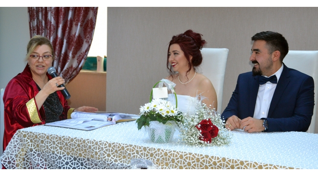TURGUTLU Belediyesinde görevli nikah memuru 52 yaşındaki Şengül Yıldız, 14 Şubat Sevgililer Gününde kızı Özge Yıldız’ın nikahını kıymanın mutluluğunu yaşadı. Birçok çiftin nikahını kıyan nikah memuru Yıldız, kızının nikahını kıyarken duygu dolu anlar da yaşadı. Kızının nikahını kıymanın her kişiye nasip olmadığını söyleyen anne Yıldız: “Çok güzel ve gurur verici bir olaydı. Çok duygulandım.” dedi. Birçok çiftin nikahını kıyan Turgutlu Belediyesi Evlendirme Memurlarından Şengül Yıldız, kıydığı nikahlara kendi kızının nikahını da ekledi. 2 yıldır birlikte olan bilgisayar öğretmeni 26 yaşındaki Özge Yıldız ile jeoloji mühendisi 27 yaşındaki Mesut Asil Seğmen Turgutlu Belediyesi Nikah Salonunda gerçekleştirilen nikah töreniyle evlendi. Törene Turgutlu Belediye Başkanı Turgay Şirin, İLçe Milli Eğitim Müdürü Mehmet Ölmez, Manisa Büyükşehir Belediyesi Turgutlu Koordinatörü İbrahim Kara, Millet İttifakı Belediye Başkan adayı Çetin Akın, çiftin yakınları ve arkadaşları katıldı.Çiftin nikahını Turgutlu Belediyesinde nikah memuru olarak görev yapan gelinin annesi Şengül Yıldız kıyarken, şahitlikleri de Turgay Şirin ve Mehmet Ölmez yaptı.Kızının nikahını kıyarken, hem heyecanlanan, hem de duygulanan Yıldız, “Bugün benim, çok özel bir günüm. Bu güne kadar görev yaptığım süre içerisinde çok nikah kıydım. Bugün de biricik kızımın nikahını kıyma görevi bana düştü. Biricik kızım vardı, şimdi ise onunla birlikte bir ömür boyu geçirecek bir oğlum var. Kızım ve damadımı kutluyorum. Her şey gönüllerince olsun. Her kişiye nasip olmaz, kızının nikahını kıymak. Çok güzel ve gurur verici bir olaydı. Çok duygulandım.” dedi. Tuncel YILMAZ / TURGUTLU, (DHA)