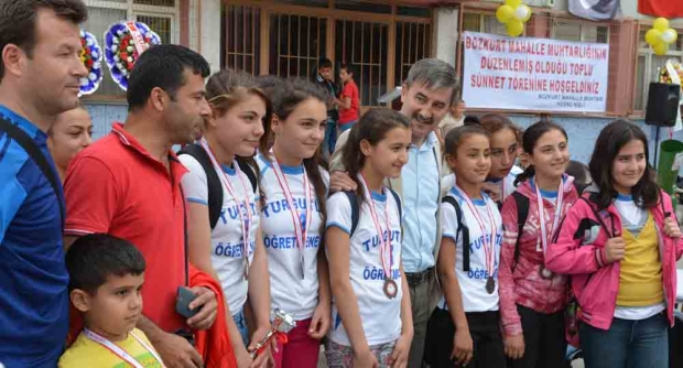 Nişli dileğini yerine getirdi34 çocuğu sünnet ettirdiMANİSA’nın Turgutlu İlçesi Bozkurt Mahallesi Muhtarı Hüsnü Nişli mahallesinde 34 çocuğu sünnet ettirdi. Bugün Bozkurt Mahallesi’ndeki İhsan Erturgut Ortaokul Bahçesi’nde düzenlenen toplu sünnet merasimi saat 16.00 da başladı. Mevlid-i Şerif okutuldu. Sünnet çocukları mehter eşliğinde faytonlara bindirilerek gezdirildi. Okul Bahçesi’nde mehter eşliğinde sünnet çocukları ve aileleri doyasıya eğlendi.Toplu sünnet merasimine Turgutlu Belediye Başkanı Turgay Şirin , Belediye Başkan Yardımcısı Hakan Sezer, Turgutlu İlçe Milli Eğitim Müdürü Mehmet Ölmez , MHP, CHP, AKP ilçe başkanları, , bazı siyasi parti milletvekili adayları ve İlçedeki mahalle muhtarları, sünnet çocuklarının aileleri,yakınları katıldı.Bozkurt Mahallesi Muhtarı Hüsnü Nişli, seçilmeden önce toplu sünnet dileğim vardı. Bu toplu sünnet merasimine katkı yapan ve katılan tüm emeği geçenlere teşekkür ediyorum. Bakın bir burdaki insanların yüzlerindeki mutluluğa. Allah izin verirse her yıl yapmayı düşünüyorum “diye konuştu. Doğan ÇİZMECİ