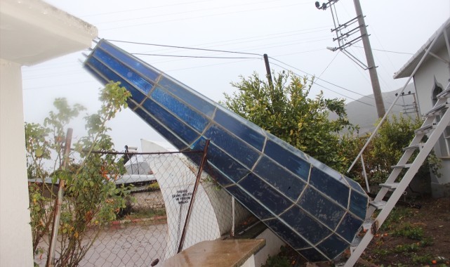 İZMİRin Ödemiş ilçesinde etkili olan şiddetli rüzgar bir cami minaresinin külahını devirdi.