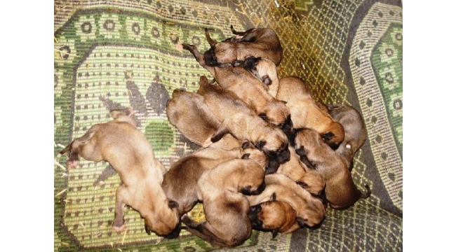MANİSA'nın Sarıgöl ilçesinde, bir besi çiftliğindeki 'Anadolu çoban köpeği' cinsi 'Hazan' isimli köpek, ilk doğumunda 7'si dişi 18 yavru birden dünyaya getirdikten sonra öldü. Besı çiftliğinin sahipleri, yavruların biberon ile beslenip, elektrik sobası ile ısıtılarak hayata kalmaları için mücadale veriliyor.Sarıgöl'ün kırsal Tırazlar Mahallesinde besicilik yapan Mehmet Ali Yalçın (32) ile yakını Ali Yalçınalp'in (24) iki yıldır besledikleri Anadolu çoban köpeği bu yıl ilk kez gebe kaldı. Doğum yapmakta zorlanan köpek geçen 30 Nisan'da veteriner hekim Hüseyin Bardakçı'ya götürüldü. Bardakçı'nın, sezaryenle doğumu gerçekeştirdiği köpek, 7si dişi 18 yavru dünyaya getirdi. Ancak, anne köpek, doğumda aşırı kan kaybından yaşamını yitirdi.Yalçın ve Yalçınalp, annesiz kalan sevimli yavruları, sahibi oldukları besi çiftliğine götürüp, gözü gibi bakmaya başladı. Elektrikli soba ile 24 saat yavruları ısıtıp, biberon ile sadece süt değil, veterinerin tavsiye ettiği mamalarla beslediklerini belirten Ali Yalçınalp, "Hayatta kalmaları için elimizden ne geliyorsa yapıyoruz. Günümüzün büyük bölümünü onlarla geçirip, iki biberon ile sürekli onları besliyoruz" dedi.Mehmet Ali Yalçın da yavruların annesinin ellerinde büyüdüğünü belirtip, "Doğum sırasında yaşamını kaybetmesi bizleri üzdü. Ancak geride bıraktığı 18 yavrusu bize emanet. Onların hayatta kalması önemli. Bunun için ne gerekiyorsa yapmaya devam edeceğiz. Şimdilik, süt, mama ve ısınmaları için elektrik giderini hesaba katınca bize çok masrafları oluyor" dedi. Yalçın, yavruları görmek için gelen çok sayıda kişi olduğunu belirtip, "Ancak, hijyen koşullarını düşünerek şimdilik buna izin vermiyoruz" diye konuştu.Veteriner hekim Hüseyin Bardakçı da sürekli kontrol altında tuttukları yavruların sağlık durumlarının çok iyi olduğunu belirtip, "Köpek yavruları 15 günde görmeye başlar. Daha sonra yavrulara diğer gıdalar da verilmeye başlanacak" dedi.DHA