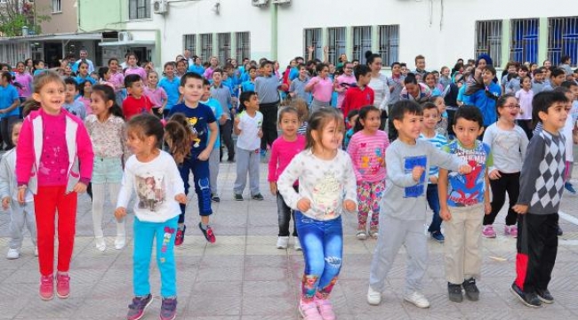 MANİSA'nın merkez Şehzadeler İlçesi'ndeki Gazi İlkokulu'nda 900 öğrenci, müzik eşliğinde sabah sporu yaptıktan sonra derse başladı