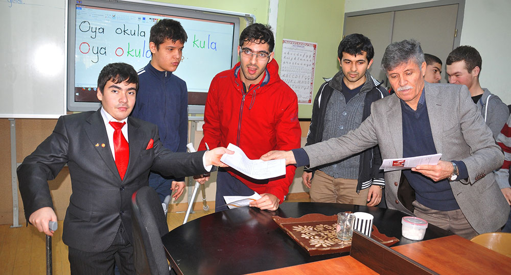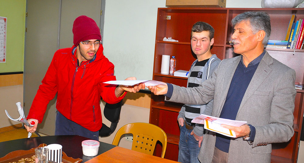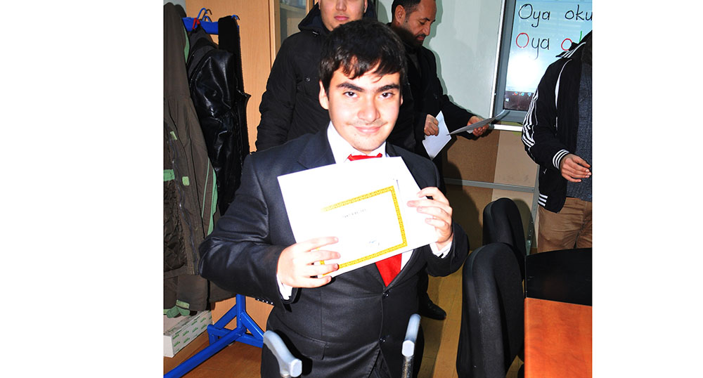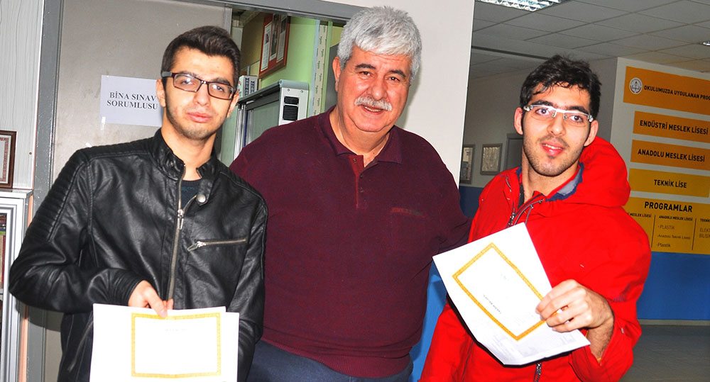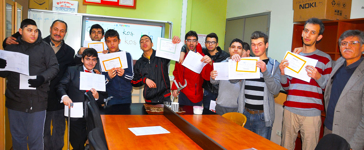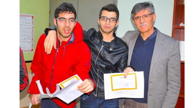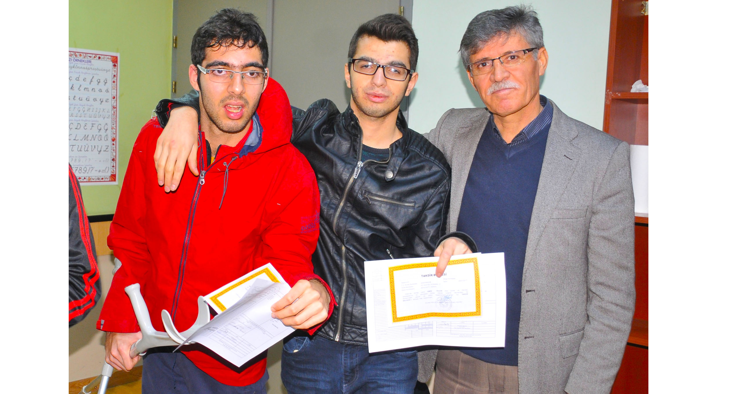 MANİSA’DA ENGELLİ ÖĞRENCİLER DE YARIYIL KARNESİ ALDI MANİSA il genelindeki okullarda kaynaştırmalı eğitim gören öğrenciler diğer öğrenciler gibi yarıyıl karnelerini öğretmenlerinin ellerinden aldı. Manisa İl Genelinde sayıları 1000’i bulan öğrencilerden Yunusemre İlçesi Polinas Mesleki ve Teknik Anadolu Lisesi'nde kaynaştırmalı eğitime tabi olan 10’un üzerindeki çeşitli engel grubundaki öğrencilere yarı yıl karneleri öğretmenleri Derviş Özgür tarafından verildi.Engelli öğrencilerin tümünün derslerini bir gün bile aksatmadan gelmeleri ve dersleri büyük bir titizlikle dinleyip ödevlerinin dört dörtlük yapmış olmaları yarı yıl karnelerine takdir olarak yansıdı. Engelli öğrencileri tebrik eden okul Müdürü İhsan Pekzorlu ise; “İnanın bu çocuklarımızın okumaya hevesli olmaları insanın çok duygulandırıyor. Biz eğitimcilere düşen ise onların bu azmini daha da arttırmaktır. Her şeyden önce sağlık durumları hangi konumda olursa olsun devamsızlıklarının bulunmaması da eğitime verdikleri önemi gösteriyor.” Öğretmenlik sürecini özel çocuklara ayıran Derviş Özgür ise; “Bu çocuklarımızla birlikte eğitim yapmak onlara inanın çok sevkli ve heyecan verici. Onların öğrenme istekleri benim daha da araştırmamı gerektirmeme neden oluyor. Onları eğitimleri boyunca biran olsun yalnız bırakmayan velilerine ayrıca teşekkür ediyorum.” Ahmet ÜNSAL/Manisa