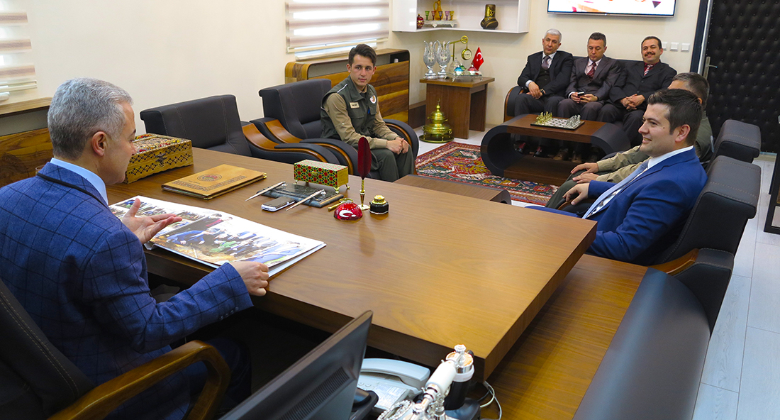ORMAN İŞLETMESİ’NDEN KAYMAKAM TURAN’A FOTOĞRAF ALBÜMÜ Ormancılık Haftası nedeniyle Turgutlu Orman İşletme Şefi Engin Çar, Turgutlu Kaymakamı Uğur Turan’ı ziyaret ederek içinde Orman İşletme faaliyetlerinin olduğu albümü hediye etti.Bugün Saat 14:30 da Turgutlu Kaymakamlık Makamlığına giden Turgutlu Orman İşletme Şefi Engin Çar ve ekibi Ormancılık Haftası nedeniyle hediyeleri olan albümü Kaymakam Turan’a verdiler. Kaymakam Turan, ziyaretten duyduğu memnuniyeti dile getirerek: “Dağıyla ve ovasıyla muhteşem ve olağanüstü güzellikte bir ilçe. Adı kasaba. Kasaba dediğiniz zaman zaten çevreye saygı, doğaya saygı, yeşile saygıyı da kapsadığını ifade ediyorum. Ve ben daha yapılacak çok iş olduğuna da yürekten inanıyorum.”Kaymakam Uğur Turan’ın konuşmasından bazı satırbaşları şu şekilde:“Turgutlu İlçe Teşkilatı olarak İzmir Bölge Müdürlüğü emrinde, Manisa Orman İşletme Müdürlüğü emrinde çalışan Orman İşletme Şefi Sevgili Engin Çar ve değerli ekibinin bütün arkadaşları temsilen, seçilen siz değerli arkadaşları Turgutlu Kaymakamlığı makamına ilişkin naif ziyaretinden dolayı en kalbi şükranlarımı sunuyorum. Cumanız mübarek olsun, 3 aylarınız güzel olsun inşallah. Turgutlu Orman İşletme Şefliği olarak hazırladığınız yeni Orman İşletmesinin fotoğraflarının yer aldığı albümü bana hediye etmeniz beni onurlandırmıştır.” Kaymakam’dan Orman İşletmeciliği’ne övgüler “Bu kaliteli çalışmanızdan dolayı yüce milletim adına teşekkür ederim. Hakikaten binamız tarihi mimariye uygun, Osmanlı ve Selçuklu mimarisini ve modern Türkiye Cumhuriyeti’ ninde mimarisinin harmanlandığı bahçesiyle, içiyle yeni ve çok güzel bir bina olmuştur. Turgutlu Orman İşletmeciliğiyle ve Orman Varlığı İşletmeciliğiyle ve Orman Su İşlerinin Bakanlığının Taşra Teşkilatı olarakta önemli bir taşra teşkilatıdır. Şu ana kadar hem orman mahallelisiyle her anlamda yaptığınız düzeyli ve seviyeli ve her geçen gün çitayı yükselterek yaptığınız çalışmalarınızı biliyorum ve bunun için de takdir ediyorum. Orman İşletme Şefi arkadaşımı da eşiyle birlikte takdir ettiğimi eklemek istiyorum. “ Dağıyla, ovasıyla muhteşem ve olağanüstü güzellikte bir ilçe. Adı kasaba. “Turgutlu’muz, doğaya saygı ve sevginin olduğu bir yer. Dağıyla ve ovasıyla muhteşem ve olağanüstü güzellikte bir ilçe. Adı kasaba. Kasaba dediğiniz zaman zaten çevreye saygı, doğaya saygı, yeşile saygıyı da kapsadığını ifade ediyorum. Ve ben daha yapılacak çok iş olduğuna da yürekten inanıyorum. Bugün elbette bu ziyaretin bir anlamı olmalı bu ziyaret bir farkındalık ziyareti idi. Sizi yakinen tanıdığıma sevindim. Muhammet Fatih Safitürk hatıra ormanından da özellikle bahsetmek istiyorum. Çünkü Muhammet Fatih Safitürk bildiğiniz üzere değerli bir mülki idari amiri kardeşimizdi. Çok değerli bir vatan evladıydı. Vatanı içim memleketi için bayrağı için ve mukaddes değerleri için şehit olan meslektaşımı bir kez daha minnet ve şükranla anıyorum.” Doğan ÇİZMECİ