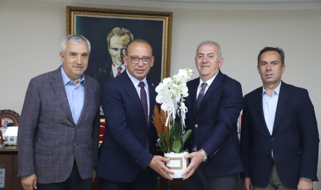 OSB yönetiminden Başkan Akın'a ziyaretTURGUTLU Organize Sanayi Bölgesi Yönetim Kurulu Başkanı Hami Özer, Yönetim Kurulu Başkan Vekili Hüseyin Maliz ve Bölge Müdürü Şükrü Caner Özcan, Turgutlu Belediye Başkanı Çetin Akın'ı akamında ziyaret etti.Yönetim Kurulu Başkanı Özer, yeniden göreve seçilmesi ve çalışmalarından ötürü Turgutlu Belediye Başkanı Çetin Akın'ı tebrik etti ve çalışmalarında başarılar diledi.Görüşme karşılıklı teşekkürler son buldu.