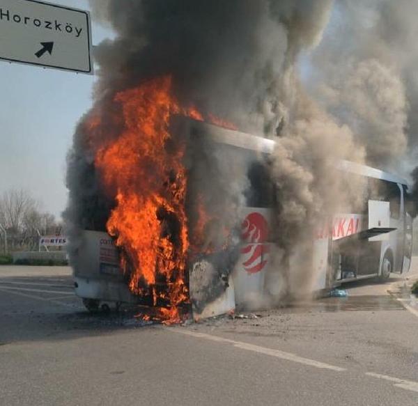 Otobüs alev alev yandı, 29 yolcu ölümden döndü