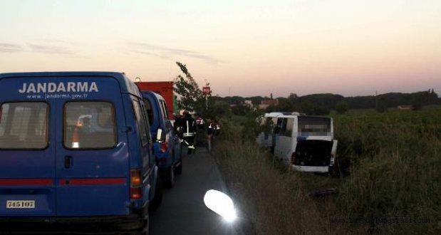 Bursa'dan Bodrum'a giden Ali T (53) yönetimindeki 16 EV xxx plakalı yolcu otobüsü, bugün saat 04.00 sıralarında İshakçelebi Beldesi yakınlarında tahliye kanalına devrildi. Yoldan geçen diğer araç sürücülerinin haber vermesi üzerine olay yerine 112 Acil Servis ekipleri sevk edildi. Kazada yaralanan 46 kişi, ambulanslarla Manisa, Akhisar, Saruhanlı ve İzmir'deki hastanelere kaldırıldı.