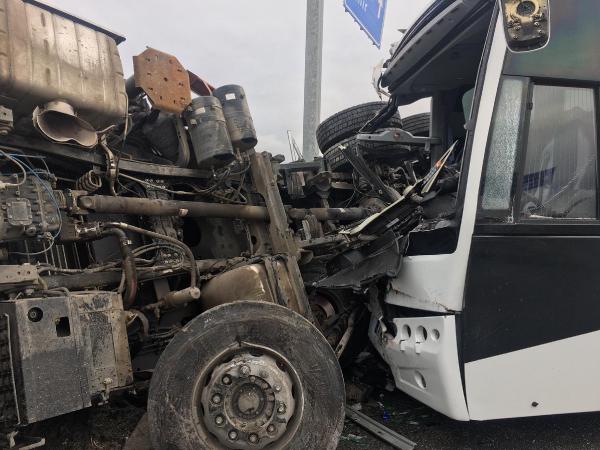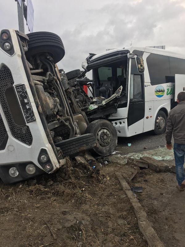 Otobüs ile vinç yüklü kamyon çarpıştı: 2'si ağır 17 yaralı