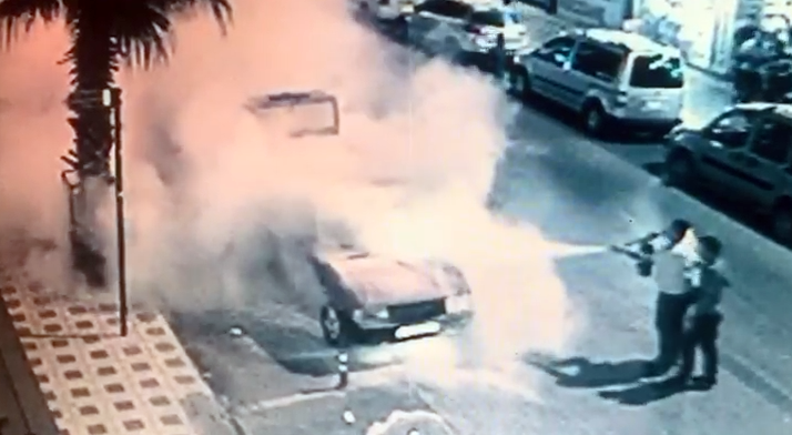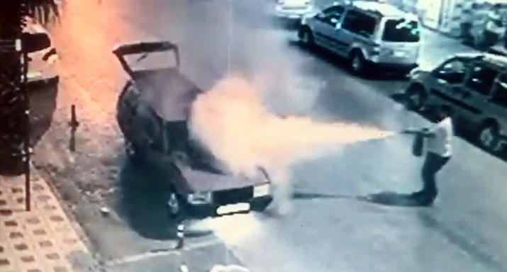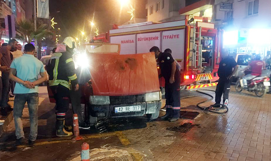 Otomobil yangını güvenlik kameralarınca görüntülendiTURGUTLU İlçesi’nde, Atatürk Bulvarı üzerinde seyir halindeki bir aracın motor bölümünde çıkan yangın çevredeki esnafın da müdahalesiyle kısa sürede söndürüldü. Otomobil bir anda alev alırken, bu anlar bir yerel gazetenin güvenlik kameralarınca görüntülendi.Bugün saat 20.30 sıralarında Atatürk Bulvarı üzerinde seyir halinde olan 42 RE 317 plakalı aracın motor bölümünde henüz bilinmeyen bir nedenle yangın çıktı. Araçtan yükselen dumanları gören araç sahibi Halil Şahin aracını yol kenarında çekti. Aracın yandığını gören çevredeki esnaflar yardıma koştu. Esnaf elindeki yangın söndürme tüpüyle yangına müdahale ederken, yangın kısa sürede kontrol altına alındı.Vatandaşların ihbarı üzerine olay yerine sevk edilen Manisa Büyükşehir Belediyesi Turgutlu İtfaiye Amirliği ekipleri de soğutma çalışması yaptı. Maddi hasarın oluştuğu araçtaki yangın bir yerel gazetenin güvenlik kameralarınca saniye saniye görüntülendi. İtfaiye ekiplerinin soruşturması sürüyor. Nurullah ÇANKAYA