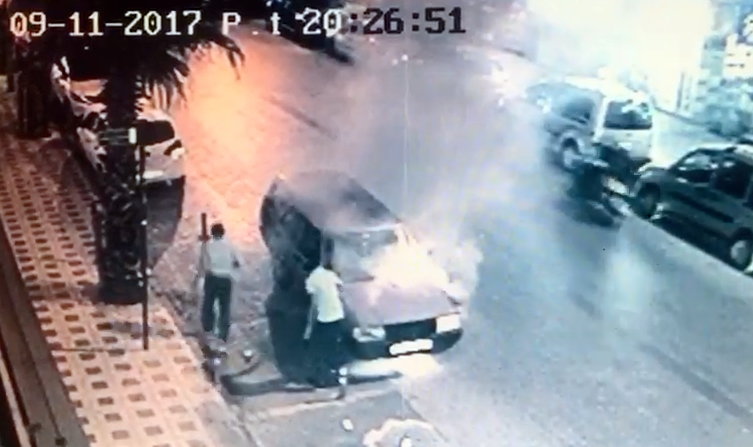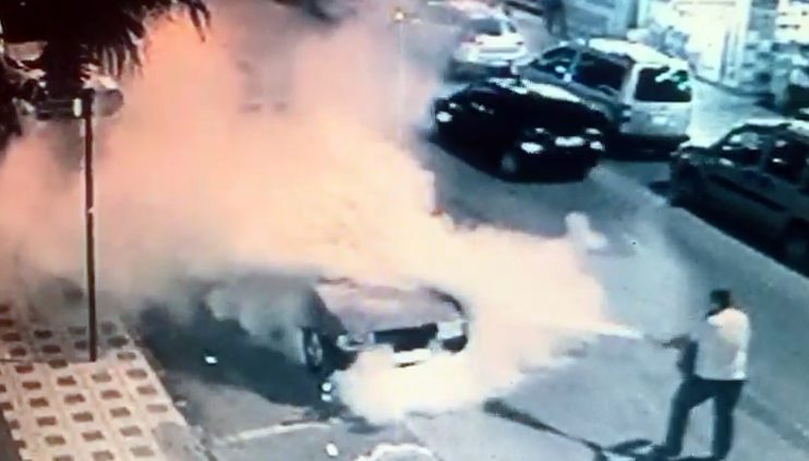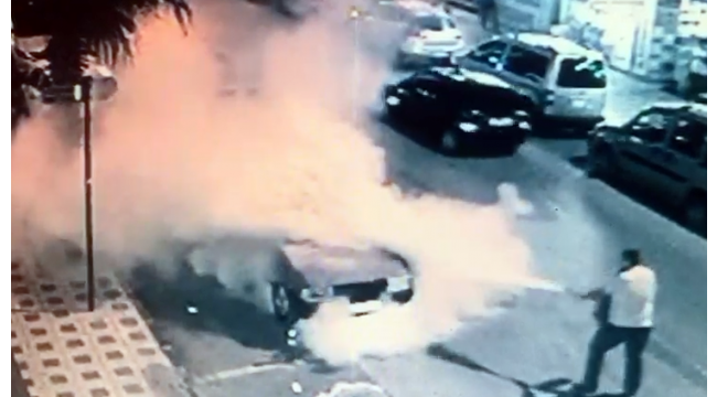Otomobil bir anda alev aldı, güvenlik kameralarına yansıdı