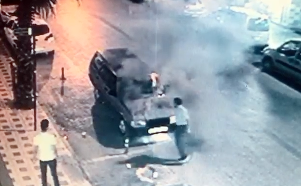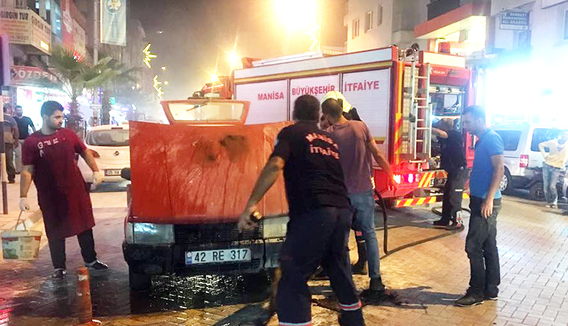 TURGUTLU İlçesi’nde, Atatürk Bulvarı üzerinde seyir halindeki bir aracın motor bölümünde çıkan yangın çevredeki esnafın da müdahalesiyle kısa sürede söndürüldü. Otomobil bir anda alev alırken, bu anlar bir yerel gazetenin güvenlik kameralarınca görüntülendi.