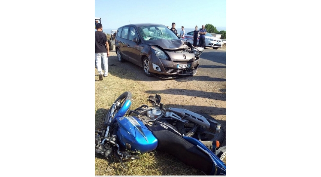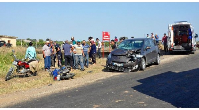 Otomobil çarpan motosikletli anne-oğul yaralandı