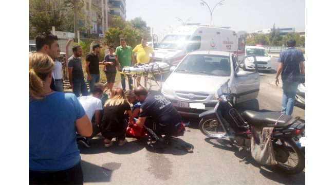 Otomobil çarpan motosikletteki 2 kişi yaralandı