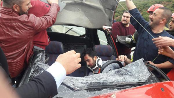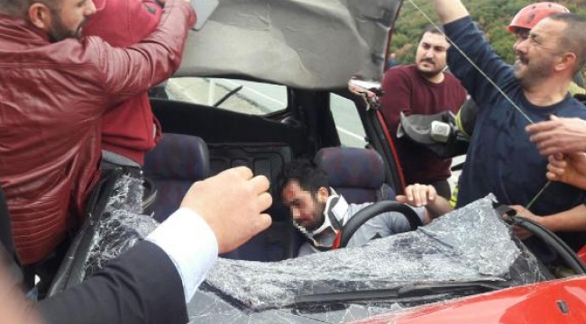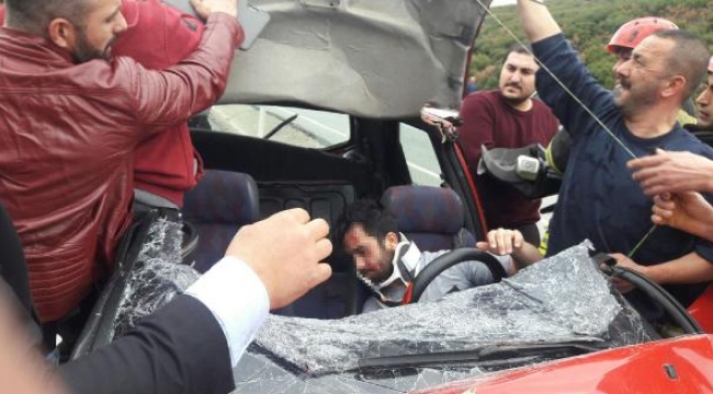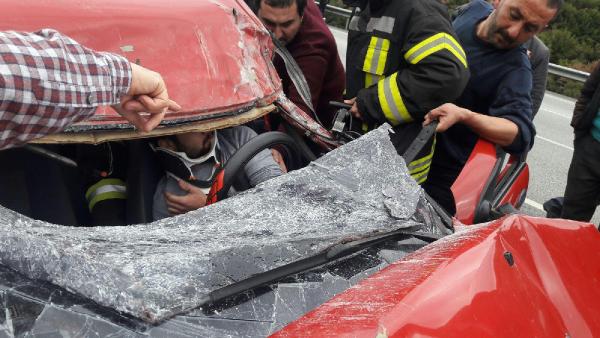Otomobil, kamyona çarptı: 2 yaralı MANİSA'nın Kula ilçesinde, kamyona arkadan çarpan otomobilin sürücüsü Halil K. (21) ve yanında oturan arkadaşı Pelin B. (21) ağır yaralandı.Kaza, bugün saat 15.30 sıralarında, Ankara- İzmir Karayolu Kula ilçesi Gökçeören Mahallesi Kovukdere rampalarında meydana geldi. Kula'dan Salihli yönüne giden Halil K.yönetimindeki 45 RA ... plakalı otomobil, önünde giden Ramazan D.(48) yönetimindeki 21 AV ... plakalı kamyona arkadan çarptı. Kazada otomobil hurdaya dönerken, sürücü Halil K. ve ön koltukta oturan arkadaşı Pelin B. araçta sıkışarak yaralandı. Kaza yerine gelen AKS 110 ekipleri, yaralılıları sıkıştığı yerden kurtardı. Ambulansla Salihli Devlet Hastanesi'ne kaldıran yaralılar, tedaviye alındı. İki yaralının hayati tehlikesinin bulunduğu belirtildi. Jandarma, kazayla ilgili soruşturma başlattı.dha