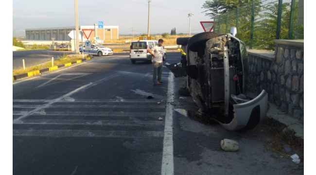 MANİSA’nın Turgutlu İlçesinde sürücüsünün direksiyon hakimiyetini kaybettiği otomobil kavşakta yan yattı. Sürücünün yara almadığı kazada otomobilde yolcu olarak bulunan 2 kişi yaralandı.Kaza, bugün saat 07.30 sıralarında Manisa Yol Kavşağında meydana geldi. Manisa yönünden Turgutlu yönüne ilerleyen Kamil K. yönetimindeki 35 DDF xx plakalı otomobil, kavşakta kontrolden çıkarak yol kenarındaki bir fabrikanın duvarına çarpıp yan yattı. Otomobil sürücüsü kazayı yara almadan atlatırken, otomobilde yolcu olarak bulunan Dilber K. (38) ve Nafia K. (22) yaralandı. Çevredekilerin ihbarı üzerine olay yerine sağlık ve polis ekipleri sevk edildi. Sağlık ekiplerince ilk müdahaleleri yapılan yaralılar Turgutlu Devlet Hastanesinde tedavi altına alındı. Yaralıların sağlık durumlarının iyi olduğu öğrenildi. Kazayla ilgili soruşturma sürüyor. Nurullah ÇANKAYA