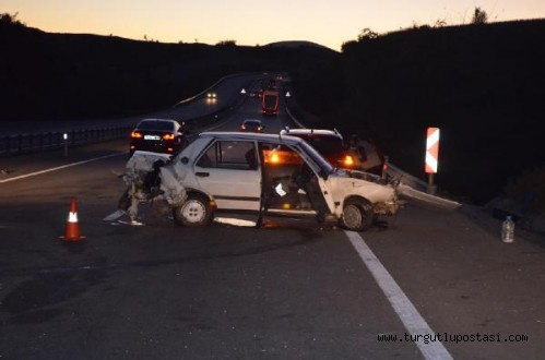Kaza, dün saat 18.00 sıralarında Ankara-İzmir D300 Karayolu Ortaköy Mahallesi Kavşağı'nda meydana geldi. Uşak yönünden Kula yönüne seyir halinde olan Osman K.n (39) idaresindeki 35 VL ... plakalı otomobilin direksiyon hakimiyetini kaybetti. Savrulan otomobil orta refüje çarparak durdu. Kazada otomobil sürücüsü Osman K. yaralanmazken, otomobilde bulunan Mehmet K.(59), Fatma K. (25), Hasan İsmail K. (5), Ramazan K. Emine K., İsmail Semih K. (7) yaralandı. Kazayı görenler durumu sağlık ve jandarma ekiplerine bildirdi. İhbar üzerine gelen sağlık ekiplerinin yaptığı müdahalenin ardından yaralılar ambulansla Kula Devlet Hastanesi'ne kaldırıldı. Burada tedaviye alınan yaralıların sağlık durumlarının iyi olduğu öğrenildi.