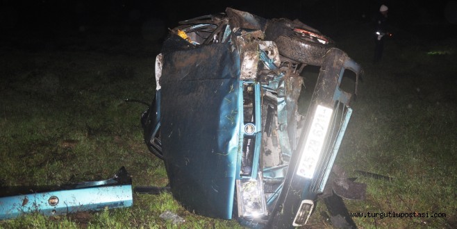 Edinilen bilgiye göre İzmir-Ankara Karayolu üzeri İzmir Turgutlu istikameti Kartal Blok mevkiinde Ahmet O. (41) yönetimindeki 45 ZB xxxx otomobil sürücüsünün direksiyon hakimiyetini kaybetmesi neticesinde önce yol kenarındaki bariyere daha sonra 5 metre derilikteki şarampole devrildi.