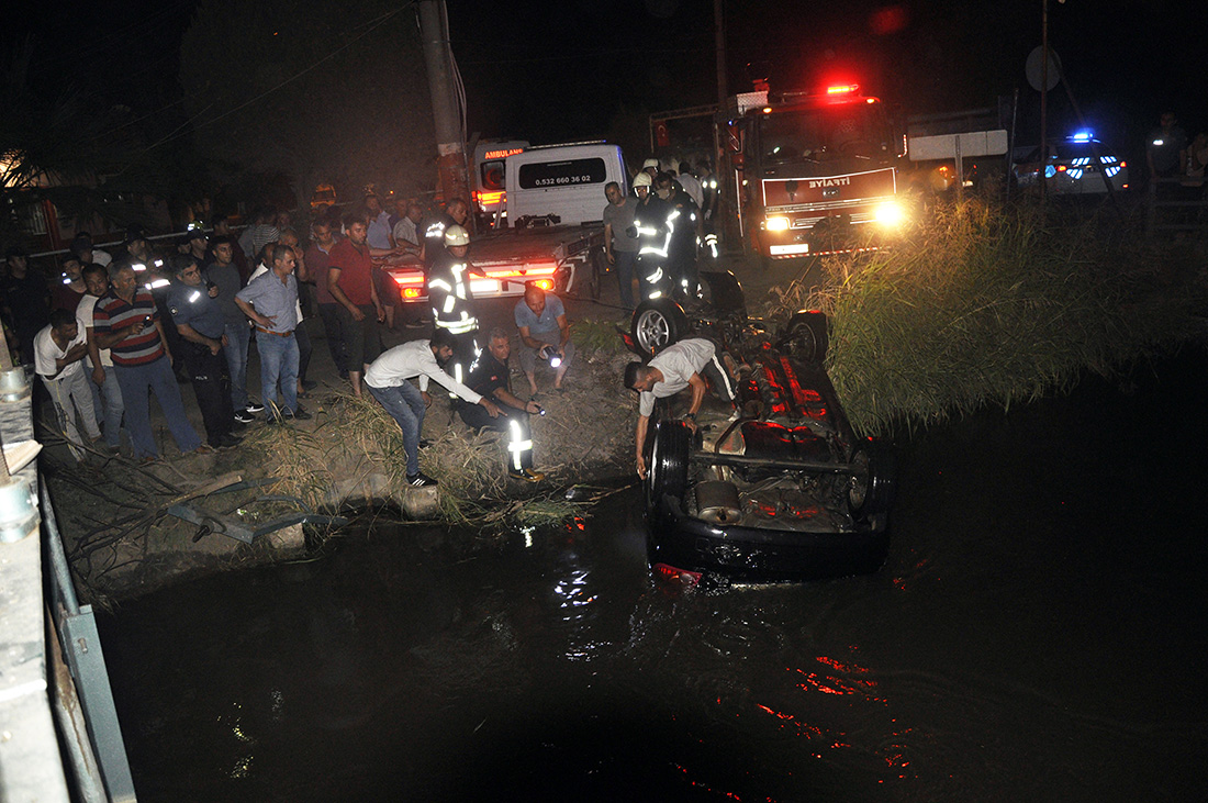 Otomobil sulama kanalına uçtu: 1 ölü, 1 yaralıMANİSA’nın Turgutlu İlçesinde sürücüsünün direksiyon hakimiyetini kaybettiği otomobil, sulama kanalına uçtu. Kanalın içinde kalan otomobilde yolcu olarak bulunan Yıldıray K. 42) olay yerinde yaşamını yitirirken, otomobilden çıkartılan sürücü Y. A. (30) sağlık ekiplerince hastaneye kaldırıldı.Kaza, cumartesi gece saat 22.30 sıralarında Turgutlu Ovası Kısmalı Yolu Mevkiinde meydana geldi. Musacalı Mahallesinden Turgutlu kent merkezine ilerleyen Y. A. yönetimindeki 45 N 46xx plakalı otomobil, direksiyon hakimiyetinin kaybolmasıyla sol sahil sulama kanalına uçtu. Çevredekilerin ihbarı üzerine olay yerine polis, jandarma, sağlık ve itfaiye ekipleri sevk edildi.Sulama kanalına uçan otomobilde yaralanan sürücü Y. A., otomobilden çıkartılarak 112 sağlık ekiplerince Turgutlu Devlet Hastanesine kaldırılırken, sağlık durumunun iyi olduğu öğrenildi.Otomobilde yolcu olarak bulunan Yıldıray K., AKS itfaiye ekipleri ve vatandaşların yardımıyla çıkartıldı. Sağlık ekipleri yaptığı kontrolde K.'nin yaşamını yitirdiğini belirledi. K.’nin cansız bedeni nöbetçi Cumhuriyet Savcısının incelemesinin ardından Turgutlu Devlet Hastanesi Morguna kaldırıldı. Kazayla ilgili soruşturma başlatıldı. Erkan ŞİMŞEK - Nurullah ÇANKAYA
