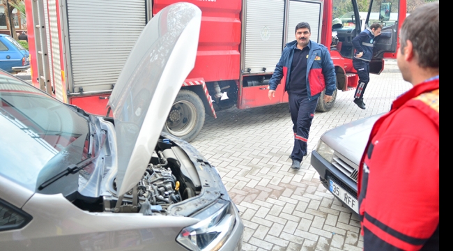 Otomobilin motoruna sıkışan kediyi itfaiye ekipleri kurtardı