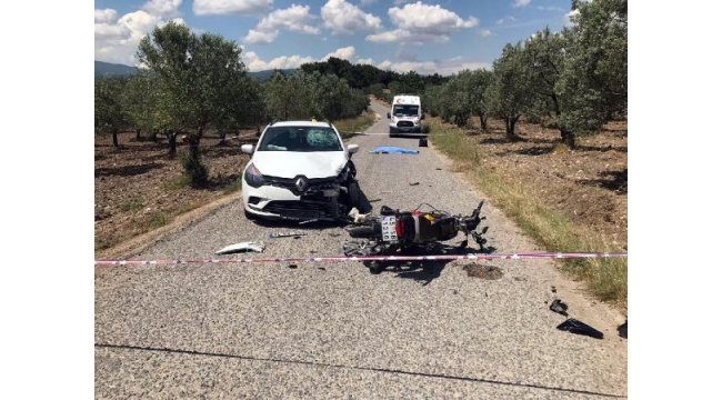 MANİSA'nın Akhisar ilçesinde, otomobille çarpışan motosikletin kasksız sürücüsü Hüseyin Gençtürk (40), yaşamını yitirdi.Kaza, saat 14.30 sıralarında, Zeytinliova- Dereköy yolunda meydana geldi. R.G.Ö. (23) yönetimindeki 34 EV 0514 plakalı otomobil, karşı yönden gelen Hüseyin Gençtürk'ün kullandığı 45 SB 1310 plakalı motosikletle çarpıştı. Kazada, başında kask olmayan Gençtürk, yaşamını yitirdi. Otomobil sürücüsü R.G.Ö. ise gözaltına alındı. Jandarma, kazayla ilgili soruşturma başlattı.DHA