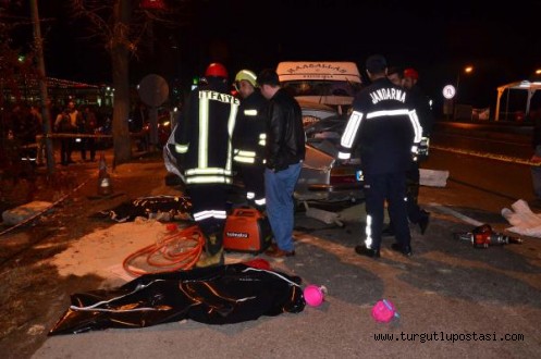 Otomobille minibüs kavşakta çarpıştı: 3 ölü, 5 yaralı MANİSA'da, kavşakta dönüş yapan otomobil ile minibüsün çarpıştığı kazada 1'i çocuk 3 kişi hayatını kaybetti, 5 kişi de yaralandı.Kaza, dün saat 19.00 sıralarında Güzelköy Kavşağı'nda meydana geldi. İddiaya göre Manisa'dan Akhisar yönüne giden Ersan K. (38) yönetimindeki 45 UA ... plakalı otomobil, kavşakta dönüş yaptığı sırada İstanbul'dan Manisa yönüne gelen Serkan G. (49) yönetimindeki 67 ND... plakalı minibüsle çarpıştı. Kazada otomobilde bulunan kimlikleri henüz belirlenemeyen 1'i çocuk 3 kişi ağır yaralanırken, Ersan Köseoğlu, Mustafa Köseoğlu (13), Ayşen Köseoğlu (36) ile minibüsteki Serkan G. ile Sevgül G.hafif şekilde yaralandı. Kazayı görenler durumu sağlık ve polis ekiplerine bildirdi. İhbar üzerine gelen sağlık ekiplerinin yaptığı kontrolde otomobildeki kimlikleri belirlenemeyen 1'i çocuk 3 kişinin hayatını kaybettiği anlaşıldı. Sağlık ekiplerinin yaptığı müdahalenin ardından yaralılar ambulanslarla çevredeki hastanelere götürüldü. Hastanelerde tedaviye alınan yaralıların sağlık durumlarının iyi olduğu öğrenildi. Kazada hayatını kaybeden 3 kişinin cesedi savcının incelemesinin ardından otopsi yapılarak kimliklerinin belirlenmesi amacıyla Manisa Devlet Hastanesi Morgu'na gönderildi.Olay sırasında yol kenarındaki lokantada ailesiyle birlikte yemek yiyen ve kaza yapar araçlardan kopan parçaların isabet etmesiyle otomobilinde hasar oluşan Mehmet G., "Tam arabamıza binecektim. Bir anda aracımız üzerine bir parça geldi. Bir baktık minibüsle otomobil kaza yapmış" dedi. Kazayla ilgili başlatılan soruşturma sürüyor.dha