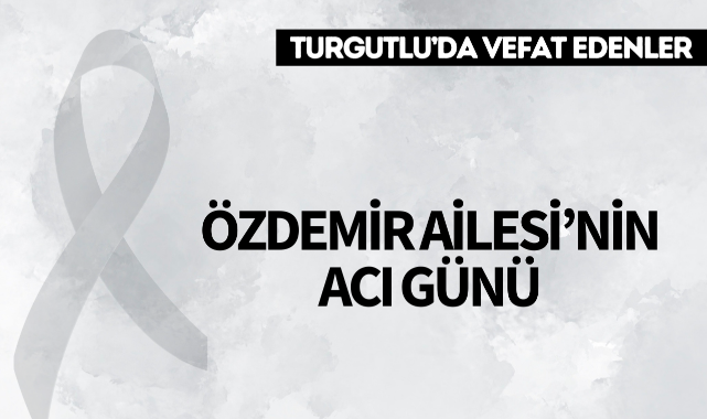 Özdemir Ailesi’nin Acı GünüTURGUTLU İlçesi hal esnaflarından İsmail Özdemir’in eşi Fatma Özdemir hakkın rahmetine kavuştu.Cenazesi bugün öğle namazına müteakip Pazar Cami’nde kılınacak cenaze namazının ardından yeni kabristanda toprağa verilecek.Yakınları: babası Hasan Adam, oğulları Ekrem Özdemir, Hasan Kağan Özdemir, kızı Ebru Kahya, damadı Harun KahyaMerhumeye Allah’tan rahmet, yakınlarına baş sağlığı dileriz.