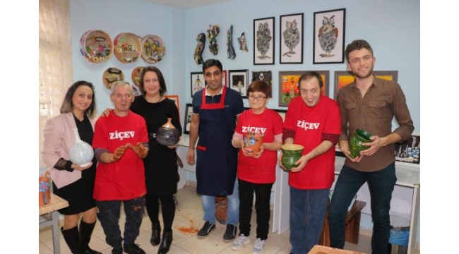 ZİHİNSEL Yetersiz Çocukları Yetiştirme ve Koruma Vakfı (ZİÇEV) Manisa Şubesi'ne bağlı bakım ve rehabilitasyon merkezinde kalan özel öğrenciler, çamuru işleyip, vazo ve çömlek ile çeşitli objeler yaparak, rehabilite oluyor.Manisa'nın Yunusemre ilçesine bağlı Mesir Mahallesi'ndeki ZİÇEV'de eğitim alan, yaşları 20 ile 60 arasında değişen 20 zihinsel engelli, oluşturulan Sosyal Yaşam Merkezi'nde el sanatları ve seramik kurslarına katılarak, çeşitli beceriler kazanıyor. Öğrenciler, el sanatları atölyesinde çamuru yoğurup vazo, çömlek ve süs eşyaları yaparak, rehabilite oluyor. Böylelikle öğrencilerin bilekleri ve refleksleri güçleniyor. Özel öğrencilerin yaptığı ürünlerin satışa sunularak, elde edilen gelirin ise onların kurs masrafları için kullanılacağı belirtildi.Öğrencilerin seramik dersinde çok keyifli vakit geçirdiğini kaydeden el sanatları öğretmeni Sinan Pakel, "Çamurlarımız vakumlanmış hazır şekilde bize geliyor. Burada öğrencilerimiz çamuru önce yoğuruyor ardından çamur yoğrulmaya hazır hale gelince vazo, bardak, çömlek gibi şekiller veriliyor. Öğrencilerimiz bu derse oldukça ilgili. Burada onların mutlu olduğunu görüyoruz. Derslerinde de gayet başarılılar. Ortaya güzel eserler çıkıyor" dedi.'YAPTIKLARI İŞTEN ZEVK ALIYORLAR'ZİÇEV'de görevli sosyolog Funda Öztürk ise el sanatlarının, rehabilite yöntemi olarak çok önemli olduğunu vurgulayıp, şunları söyledi:"Sosyolojik açıdan bakacak olursak zihinsel engelli bireylerin eğitimden yoksun olmasını asla düşünemeyiz. İnsanın bir kültürel varlık olduğunu asla unutmamalıyız. Bu dersler sonrasında olumlu sonuçlar aldığımız doğrudur. Öğrencilerimiz de bu tür çalışmalarla kendilerine olan güvenlerinin arttığını, kendilerini ve dünyayı sorgulayabildiklerini; eleştirme, öğrenme, bilgilenme, işe yaradıklarını ve ürettiklerini görebilmekteler. Bu durumda biz kesintisiz eğitime devam, diyoruz. İnsan var olduğu sürece her yaşta öğrenebilir. Öğrencilerimiz yaptıkları işten zevk alıyorlar, daha mutlular ve kendilerini güvende hissediyorlar."ZİÇEV'de eğitim alanlardan Arzu Lekesiz (45) de çamura şekil vermekten duyduğu memnuniyeti dile getirerek, tüm stresini bu işle uğraştığı sırada attığını söyledi.DHA