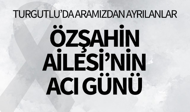 Özşahin Ailesi’nin Acı GünüTURGUTLU İlçesi sakinlerinden Perihan Özşahin hakkın rahmetine kavuştu.Cenazesi bugün ikindi namazına müteakip Taslı Camii’nde kılınacak cenaze namazının ardından yeni kabristanda toprağa verilecek.Yakınları: eşi merhum Mehmet Özşahin, oğlu merhum Gürkan Özşahin, torunu İpek Basıcı, damadı Alpaslan Basıcı Merhumeye Allah'tan rahmet, yakınlarına başsağlığı dileriz.