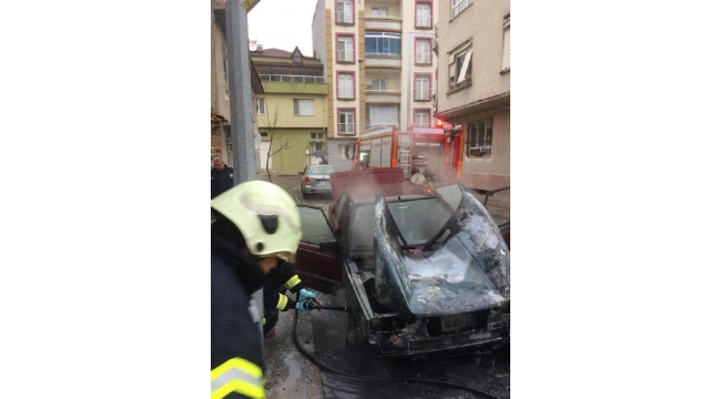 Park halindeki otomobil yandı