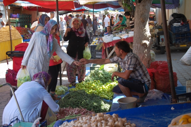 Pazarın şampiyonlarıTurgutlu’nun en eski pazarlarından birisi olan Cuma pazarına satış şampiyonu üzüm barbunya ve dolma biber oldu TURGUTLU’da bu hafta pazarın satış şampiyonu üzüm barbunya ve dolma biber oldu. Belirli tezgâhlarda yer alan üzümün kilosu 3-4 liradan Barbunya’nın 2-3 dolma biber ise 3 TL’den alıcı buldu. Pazar esnaflarından Osman Uzun, "Yaş üzüm fiyatı düştü ama satışında bir sıkıntı yok.Sultaniye üzümü pazarda yok satıyor.Vatandaş yerli barbunya ilgi gösterdi.Öte yandan pazarda 1-2 hafta önce hayvanlarımıza götürdüğümüz dolma biber ise bu hafta patlama yaptı “şeklinde konuştu.Pazardaki diğer tezgahlarda ise fiyatlar şöyleydi: Yemiş TL şeftali 3 TL bölürce 3 TL limon 5 TL patates 1 TL soğan 1 TL Marul 1 TL Sarımsak demet 2 TL’den alıcı buldu.HABER MERKEZİ