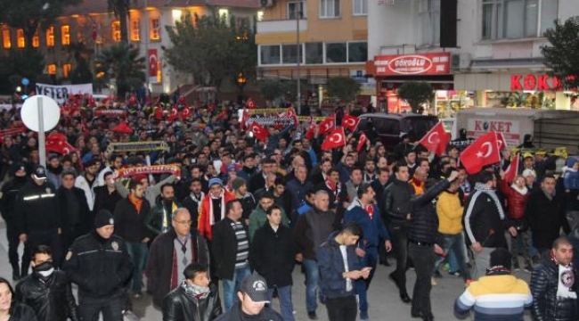 MANİSA'da, 1965 Manisaspor Taraftarları Derneği öncülüğünde düzenlenen yürüyüş ile İstanbul Beşiktaş'taki bombalı terör saldırısı kınandı.Şehzadeler İlçesi'ndeki 15 Temmuz Demokrasi Meydanı'nda ellerinde Türk bayraklarıyla toplanan yaklaşık bin taraftar, teröre lanet okudu.AK Partili Şehzadeler Belediye Başkanı Ömer Faruk Çelik ile AK Partili Yunusemre Belediye Başkanı Mehmet Çerçi? ve diğer takımların taraftarları da yürüyüşe destek verdi. Kalabalık, "Polise uzanan eller kırılsın", "Teröre karşı omuz omuza", "Vatan sana canım feda", "Şehitler ölmez vatan bölünmez" sloganları attı.Yürüyüş öncesinde kalabalığa seslenen 1965 Manisaspor Taraftarları Derneği Başkanı Altan Çakıcı, teröre karşı her zaman emniyet teşkilatının yanında olduklarını söyledi. Çakıcı, "Bu eylemi yapmamızdaki amaç ise emniyet teşkilatımızın sonuna kadar yanında olduğumuzu göstermek. Dış güçlerin ülkemiz üzerinde oynadıkları oyunlara asla alet olmayacağız. Emniyet güçleri bin bir güçlüğe rağmen terörle mücadele ederken, gereken destek neyse yapmaya hazırız. Vatan birdir ve bayrak tektir. Kimse bunu değiştiremez. Dış güçlerin terör örgütleri bizi asla yıldıramayacaktır. Çünkü bizler 15 Temmuz'da bu vatanın bu milletin ne olduğunu gösterdik. Türkiye'yi asla Suriye yapamayacaklar. Buna müsaade etmeyeceğiz. Biz bir ölür, bin diriliriz. Davamızdan asla kimse bizi vazgeçiremez" dedi.SİYAH ÇELEN BIRAKIP, POLİSE KARANFİL VERDİLERÇakıcı'nın konuşmasının ardından kalabalık, "Önce Vatan" ve "Teröre Karşı Omuz Omuza" yazılı pankartlar arkasında Manisa İl Emniyet Müdürlüğü ek binası önüne yürüdü. Kalabalık, Manisa İl Emniyet Müdürü Fevzi Bilgiç tarafından karşılandı. Eyleme katılanlar, Çevik Kuvvet polislerine karanfil dağıttı. Taraftarlar ayrıca ek hizmet binasının önüne terör saldırısında hayatını kaybeden şehitler anısına siyah çelenk bıraktı.Taraftar gurubuna polise verdiği destekten dolayı teşekkür eden Manisa İl Emniyet Müdürü Fevzi Bilgiç, "10 Aralık günü İstanbul'da yaşanan hain saldırıdan dolayı birçok arkadaşımızı şehit verdik. Bu topraklar bizim vatanımız. Bu topraklarda daha öncede çok şehitler verdik. Bu vatan için birlik ve beraberlik ruhunda hareket ettiğinizi bir kez daha gösterdiniz. Şehitlerimize Allah'tan rahmet, yaralılarımıza şifalar diliyorum. Bizde bundan önceki zamanlarda yaşamış olduğumuz hain saldırılardan bir çok dersler aldık. Bizi yıldıramayacaklar. Kendi ülkemizde birlik ve beraberlik içinde yaşamaya devam edeceğiz. Taraftarlarımızla, sivil toplum örgütlerimiz ve vatandaşlarımızla hep birlikte hareket edeceğiz. Hainlere göğüs gere gere, normal şartlarda gelseler çatışa çatışa mücadele ederiz. Ancak, bunlar hain oldukları ve içimize sızdıkları için karşımıza çıkamıyorlar. Bizde içimizi temizleyerek bunlarla mücadele ediyoruz. Devletimizin her zaman güçlü ve 18 yaşındadır" diye konuştu. Konuşmasının ardından 965 Manisaspor Taraftarları Derneği Başkanı Altan Çakıcı, İl Emniyet Müdürü Bilgiç'e karanfil verdi. Kalabalık, daha sonra olaysız dağıldı.İ