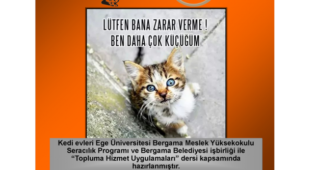 Bergama’da “Prototip Kedi Evleri”*Ege Üniversitesi Bergama Meslek Yüksekokulu Seracılık Programı öğrencileri “Lütfen Bana Zarar Verme. Ben Daha Çok Küçüğüm” adlı proje kapsamında yapılan kedi evleri ile sokakta yaşayan kedilerin soğuk kış şartlarında barınmaları için uygun ortamlar yaratıldı. Ayrıca yapılan proje ile sokak hayvanları konusunda toplumda farkındalık yaratılmaya çalışıldı.İZMİR(Ege Ajans)- Ege Üniversitesi Bergama Meslek Yüksekokulu Seracılık Programı öğrencileri Bergama Belediyesi işbirliği ile “Prototip Kedi Evleri” projesi gerçekleştirdi.Topluma Hizmet Uygulamaları dersi kapsamında Bergama Meslek Yüksekokulu Seracılık Programı öğrencileri Proje Danışmanı Yrd. Doç. Dr. Sumru Eltez önderliğinde geliştirdikleri ve imalatını da kendilerinin yaptığı 21 adet kedi evini Bergama Belediyesi işbirliği ile yine ilçede bulunan 21 adet parka yerleştirdi.“Lütfen Bana Zarar Verme. Ben Daha Çok Küçüğüm” adlı proje kapsamında yapılan kedi evleri ile sokakta yaşayan kedilerin soğuk kış şartlarında barınmaları için uygun ortamlar yaratıldı. Ayrıca yapılan proje ile sokak hayvanları konusunda toplumda farkındalık yaratılmaya çalışıldı. Nitekim parkların civarında yaşayan kişiler yavaş yavaş beslenmelerine yardımcı olmaya ve kedi evlerinin sorumluluğunu almaya başladı.(YA/OK)