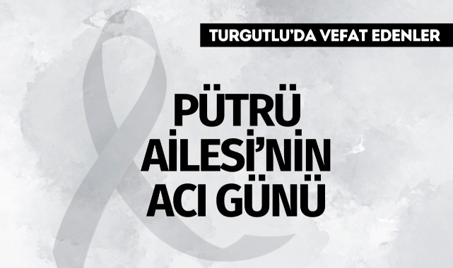Pütrü Ailesi’nin Acı GünüTURGUTLU İlçesi sakinlerinden Recai Pütrü (79) hakkın rahmetine kavuştu. Cenazesi bugün öğle namazına müteakip Alankuyu Camii’nde kılınacak cenaze namazının ardından yeni kabristanda toprağa verilecek.Yakınları: eşi merhume Şengül Pütrü, oğulları merhum Zülfü Pütrü, Sait Pütrü, kardeşleri merhum yorgancı Neşat Pütrü, Vahit Pütrü, Sait PütrüMerhuma Allah'tan rahmet, yakınlarına başsağlığı dileriz.