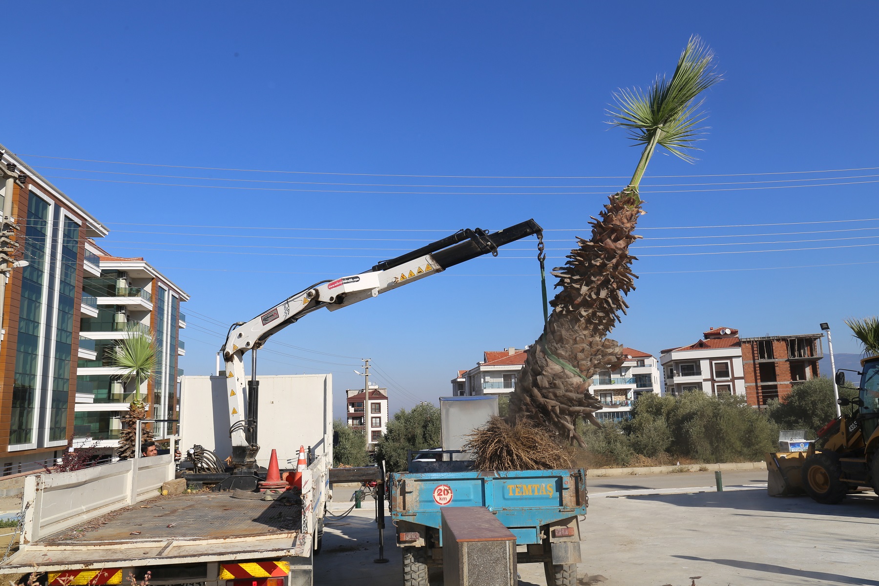 Refüjden sökümü gerçekleştirilen palmiyeler atıl yerlere dikiliyor