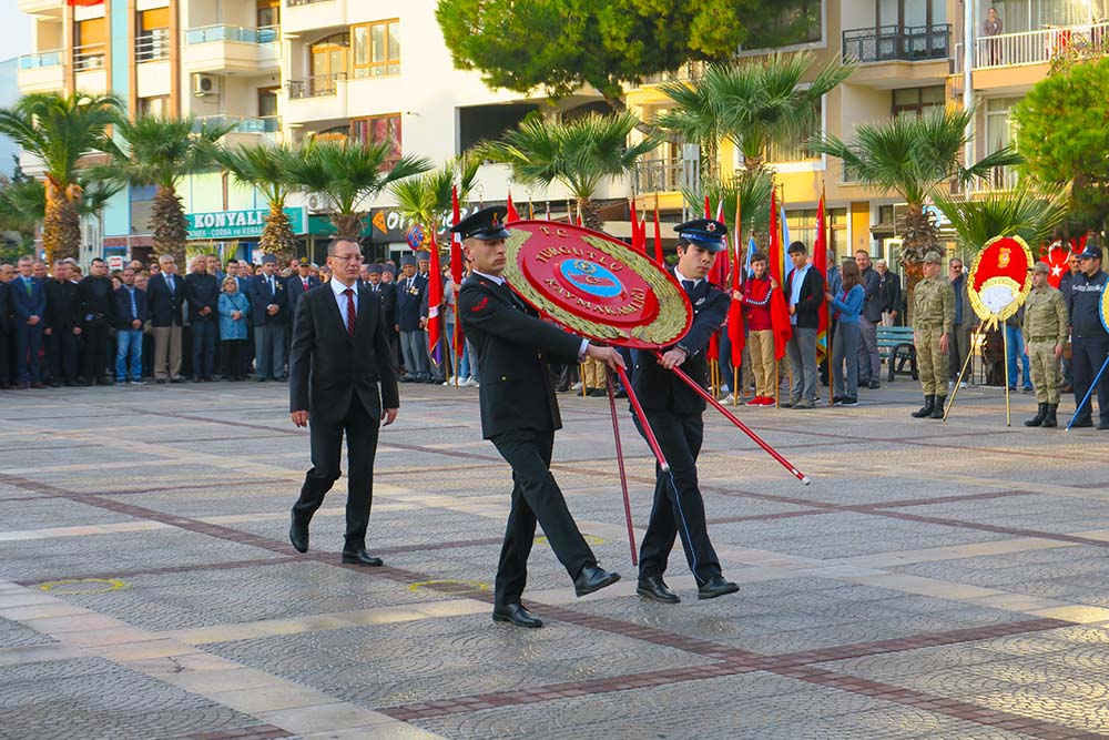 Saat 09:05'te hayat durduManisa’nın Turgutlu İlçesinde de 10 Kasım Mustafa Kemal Atatürk'ü Anma Töreni GerçekleştiCumhuriyetimizin kurucusu Mustafa Kemal Atatürk'ün vefatının 81. yıl dönümünde ilçemizde yapılan törenle anıldı.Atatürk Anıtı'na çelenk sunumu ile başlayan anma törenine; Turgutlu Kaymakamı Ali Yılmaz, Garnizon Komutanı Albay Kenan Peşternik, CHP Manisa Milletvekili Bekir Başevirgen CHP’li Belediye Başkanı Çetin Akın , siyasi parti İlçe Başkanları amirleri, öğrenciler ve Turgutlu halkı katıldı.Saat 09:05'te 2 dakikalık saygı duruşu ile devam eden törene aynı anda siren sesleri de eşlik etti.İstiklal Marşı eşliğinde göndere çekilen Türk Bayrağı daha sonra yarıya indirildi. Atatürk Anıtı’ndaki törenin ardından Halil Kale Fen Lisesi’nde diğer törene geçildi.Anma törenlerinde bütün yurtta olduğu gibi Turgutlu’da da hayat durdu. Atatürk Bulvarındaki seyir halindeki araçlar durarak sürücüler araçlarından inip saygı duruşuna katıldı. Alanın yanın başındaki spor yapan vatandaşlarda saat 09.05’te Ataya saygı duruşunda bulundu. Geçen yıl yaşanan siren krizinin yeniden yaşanması için duyarlı olunduğu gözlendi. Doğan ÇİZMECİ