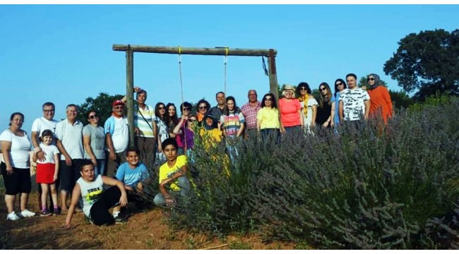 Mor ve yeşilin görsel bir şölen oluşturduğu bahçeyi ziyaret eden Turgutlu Dağcılık ve Doğa Sporları Kulübü üyeleri, cep telefonlarıyla lavanta kokuları eşliğinde güzel dostluk ortamında fotoğraf çekmenin keyfini yaşadılar.