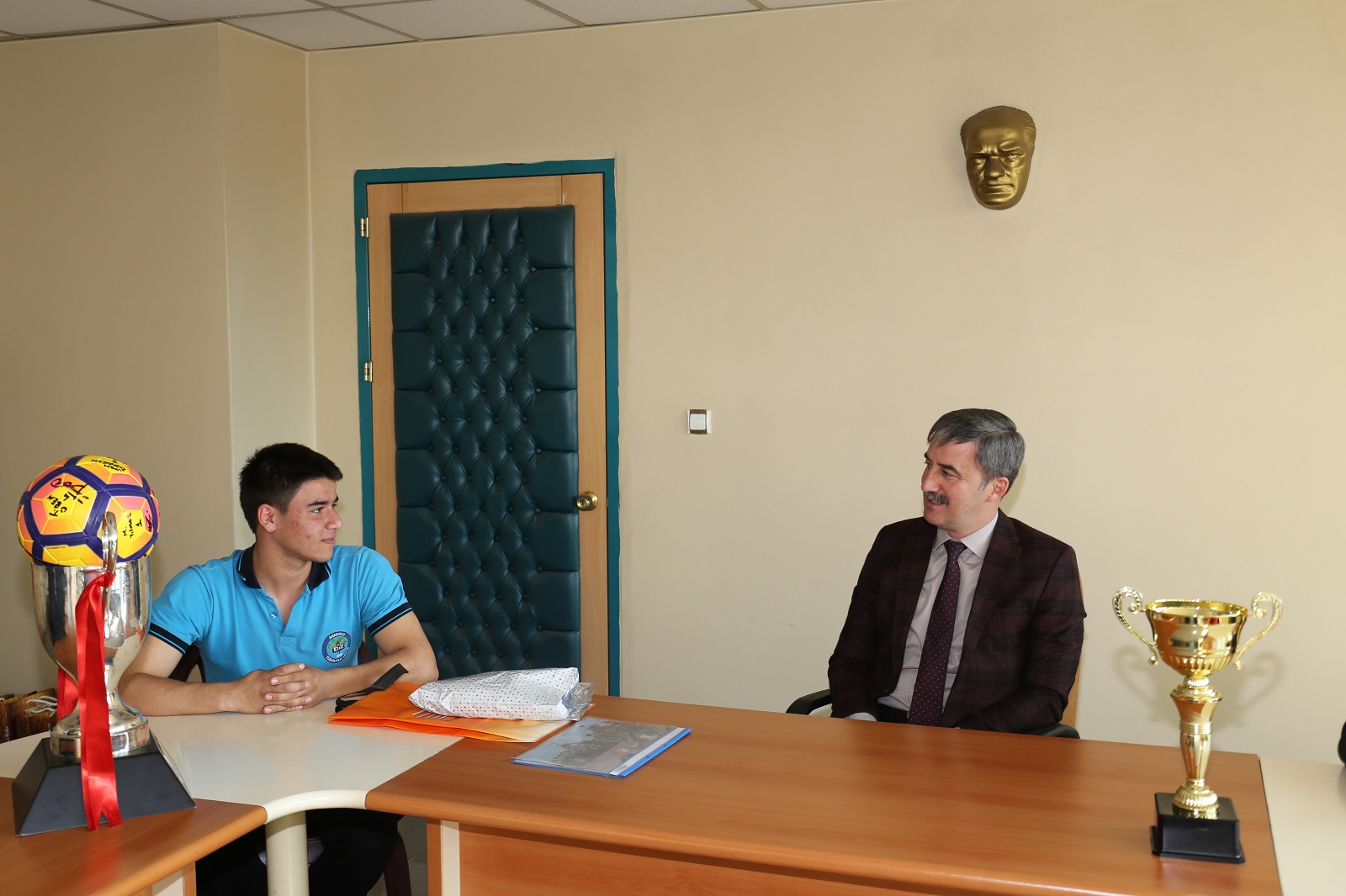 İstanbul Riva’da 2-3-4 Ocak 2017 tarihleri arasında düzenlenen Nike Halı Saha Futbol Turnuvası’nda Türkiye Şampiyonu olan ve aynı zamanda Futsal’da da il birincisi olan Turgutlu Lisesi futbol takımı sporcuları, Turgutlu Belediye Başkanı Turgay Şirin’i ziyaret etti. Şampiyon sporcular ziyaretlerinde Başkan Şirin’e Milli Takım forması jesti yaparak gönülleri feth etti.