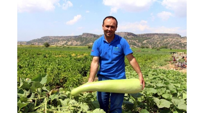 Şanlıurfa'dan getirdiği tohumdan 1 metrelik kabak yetiştirdi