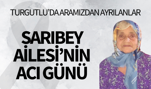 Sarıbey Ailesi’nin Acı GünüTURGUTLU İlçesi sakinlerinden Elif Sarıbey hakkın rahmetine kavuştu.Cenazesi bugün ikindi namazına müteakip kılınacak cenaze namazının ardından eski kabristanda toprağa verilecek.Merhumeye Allah'tan rahmet, yakınlarına başsağlığı dileriz.