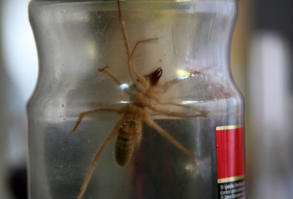 DÜNYA’nın en tehlikeli böceklerinden sayılan Sarıömer Böceği Manisa’nın Turgutlu İlçesinde görüldü. MANİSA’nın Turgutlu ilçesi Şehitler Mahallesi 7 Eylül Caddesi Ergenekon Kavşağı mevkiinde bir öğretmen tarafından fark edilen 'sarı kız' ve 'sarı Ömer' lakaplı örümcek öğretmen tarafından yakalanarak kavanozda koruma altına alındı.İzmir’in Kemalpaşa ilçesinde bir okulda müdür olarak görev yapan Muhammet Kılıç tarafından yakalanarak kavanoz içerisinde koruma altına alınan 'sarı kız' ve 'sarı Ömer' lakaplı örümcek kıymayla besliyorDünyada çöl bölgelerinde ülkemizde de Doğu ve Güneydoğu Anadolu'da yaşayan Sarı Ömer örümceği, zehriyle bir insanı öldürebiliyor.vatandaşların korkulu rüyası haline gelen 'sarı kız' ve 'sarı Ömer' lakaplı örümcek Turgutlu Belediyesi Veterinerlik Hizmetleri Bölümüne teslim edilecek.Muhammet Kılıç ; “Gece saatlerinde eve giderken araba ışıklarıyla yolda fark ettim. İlginç hayvanlara meraklı olduğum için tanımakta zorluk çekmedim bir ağaç parçası kullanarak örümceği yakalayarak kavanoz içerisinde koruma altına aldım .Farkındalık yaratmak maksadıyla belediyeye teslim etmeden dün geceden beri kıymayla beslediğim örümceğin ilçemizdede görüldüğünün bilinmesi için sizlerle paylaşmak istedim” dedi.Son günlerdeartan hava sıcaklığıyla birlikte sokaklarda ve park bahçelerde ortaya çıkan hayvanlara bu hayvanında dahil olması nedeniyle vataşlarımızın dikkatli olmaları gerekmektedir diyen Kılıç; “ Yetkililerin de bunu farketmesi için Belediye Veterinerlik Hizmetleri bölümüne örümceği teslim ederek vatandaşlık görevimi yapacağım” dedi. Doğan ÇİZMECİ/TURGUTLU