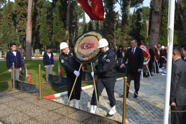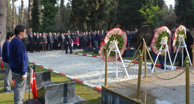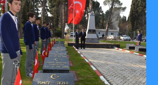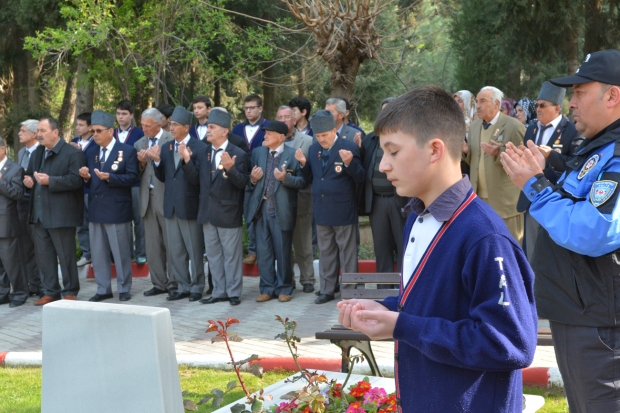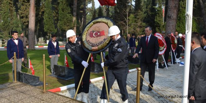 Şehitler dualarla anıldı18 Mart Çanakkale Zaferi ve Şehitleri Anma Günü törenleri tüm yurtta olduğu gibi Turgutlu’da da yapıldı. Turgutlu’daki ilk tören saat 09.00’da Turgutlu Belediye Mezarlığı Şehitliği’nde gerçekleşti. Kaymakam Nazmi Günlü, Garnizon Komutanı Per. Bnb. Ömer Haşim Olgun, Belediye Başkanı Turgay Şirin çelenkleri şehitliğe koytu. Saygı duruşundan sonra Manga tarafından saygı atışları yapıldı.. Mezarda bulunan şehit mezarları ziyaret edilerek dualar okundu.Bu yılki törenlerde şehitlikte ilginin çok olduğu görüldü.Şehit yakınlarının yanı sıra gaziler de toplu halde törenlere katıldı.Şehit yakınların yakınları gözyaşı içinde kabir başında dua ettiler.Doğan ÇİZMECİ