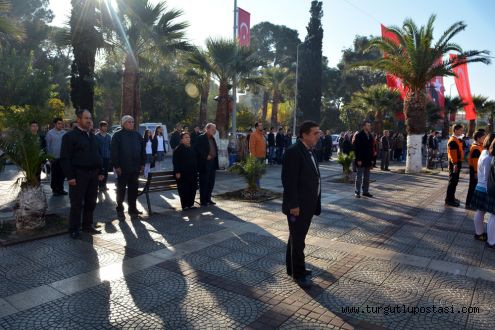 Turgutlu 50.yıl alanında saat 08.45’te başlayan Çelenk Koyma Törenine,Turgutlu Kaymakamı Nazmi Günlü,Manisa CHP Milletvekili Hasan Ören,Belediye Başkan Yardımcısı Hüseyin Simav,Garnizon Komutan Vekili Jandarma Komutanı Yüzbaşı Levent Türker,resmi daire müdürleri,siyasi parti ve sivil toplum temsilcileri,vatandaşlar ve öğrenciler katıldı.Çelenk koyma töreninin ardından saat 09.05’te çalmaya başlayan siren sesiyle 2 dakika boyunca hayat durdu.Yoldan geçen araç sürücüleri araçlarından inerek saygı duruşunda bulundu,bazı vatandaşlar ise evlernin balkonlarında saygı duruşuna eşlik etti.2 dakikalık saygı durşunun ardından okunan İstiklal Marşıyla tören sona erdi.Tüm Turgutlu’da bayraklar yarıya indirildi.